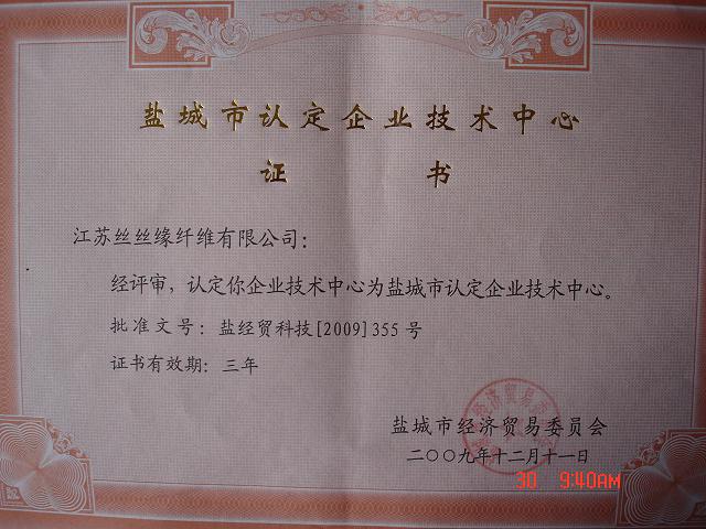 December 28, 2009, our Engineering Fibre Technology Center has been recognized as Yancheng City People's Government (photos) level enterprise technical centers.