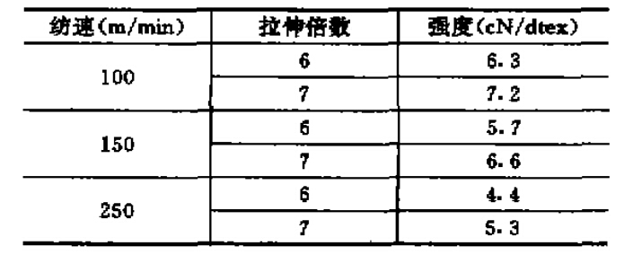 表3 拉伸倍數對丙綸高強絲強度的影響